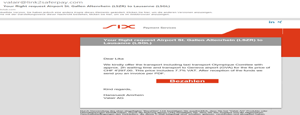 Mittels QR Code (liegt im Büro und im Hangar und im Helikopter) Kunde muss nur Zahlungsanweisung folgen.