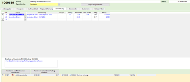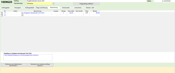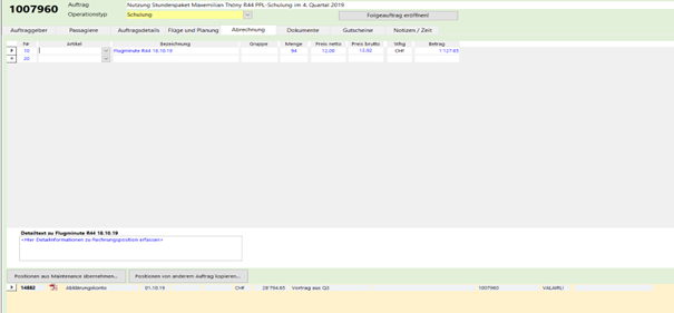 Parallel die Fluglehrerkosten in einem separaten Auftrag erfassen, welcher monatlich abgerechnet wird.
