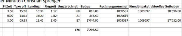 - Der Kunde wird zwei Quartalsabrechnungen erhalten: eine Schulungs-Flugstundenabrechnung ohne MWST und eine Charter-Flugstundenabrechnung mit MWST.