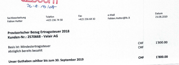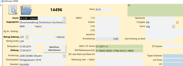 - ACHTUNG: Manchmal stellt der Zoll Abflugabfertigung in Balzers in Rechnung. Diese Rechnungen sehen fast gleich aus, müssen aber anders verbucht werden und haben nichts mit dem ZAZ-Konto zu tun.