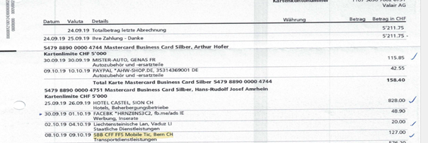 Wenn ja kann der eingescannte Beleg mit der Total Summe an Viseca verbucht werden