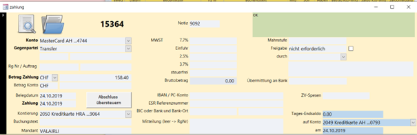 - Zollverwaltung: MWST-Rechnungen. Immer über 2207 ZAZ buchen (nicht 2201 MWST-Abrechnung, das ist für die Quartalsabrechnung). Dafür kannst du die Rechnungen immer gleich selber abhaken.