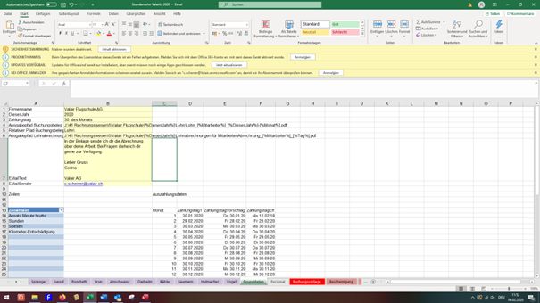 Kontrolle, ob Fluglehrer Stunden erfasst sind auf dem Excel (oben beschrieben)