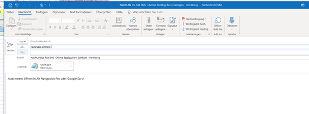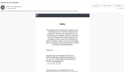- Bei Genehmigung von der Skyguide wird ebenfalls ein E-Mail zur Bestätigung zugestellt, deren Anweisungen im SFO Tool Folge leisten.