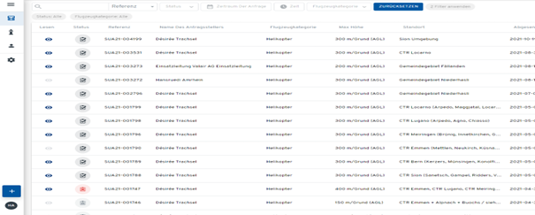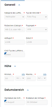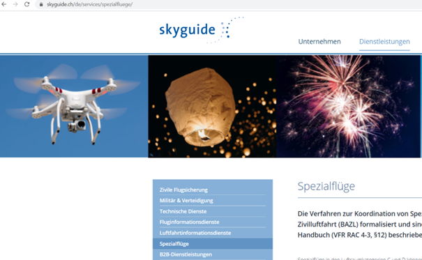 - Anmeldung mittels Homepage der Skyguide https://sfo.skyguide.ch/operator/requests