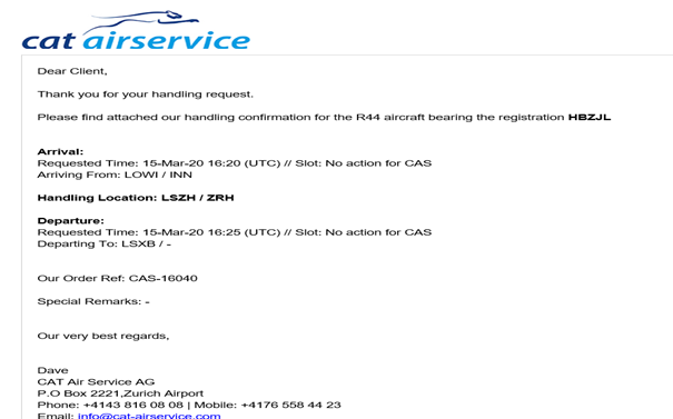 - I would like to register our handling for upcoming 15th March 2020 HB- ZJL