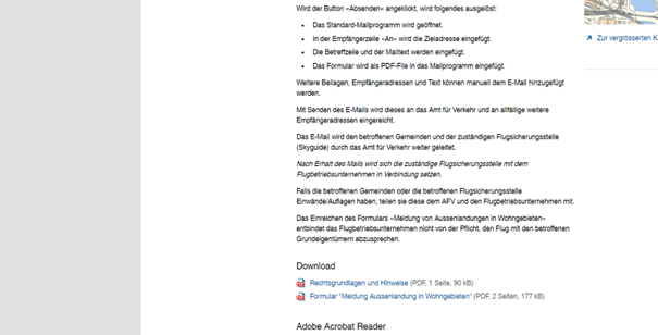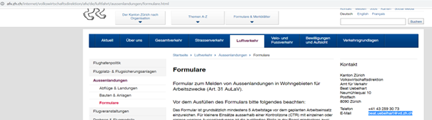 Dann Formular ausfüllen für Aussenlandungen, dies wird dann der Gemeinde zugestellt.