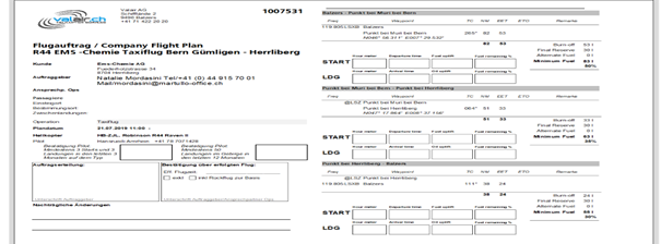 - Arrival from LOWI 17:20 1 Pilot Amrhein Hansruedi No. cell phone 0041 78 707 14 28