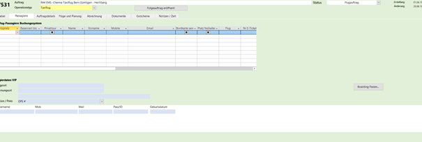 Passagiere – ergänzen dann unter Boarding Pass drucken