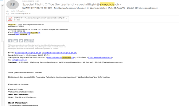 - E-Mail wird von Skyguide bestätigt mit Koordinationsbestätigung
