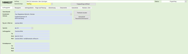 OPS Nr. Kundeninfo (Name, Adresse, Gewicht, Geburtsdatum, Tel. Nr.) so viele Infos wie möglich Auch falls ein Apero abgeholt werden muss beim Bäcker usw.