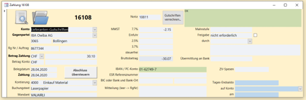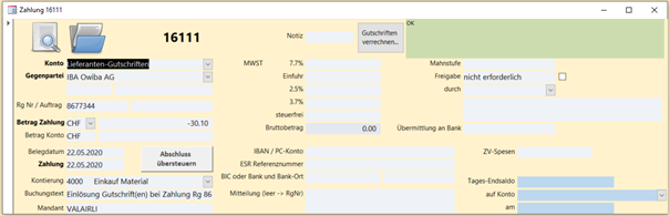 Dann zieht es bei der neuen Erfassung einer Rechnung, wenn man auf den Knopf Gutschrift verrechnen automatisch ab und generiert eine neue Verbuchung: